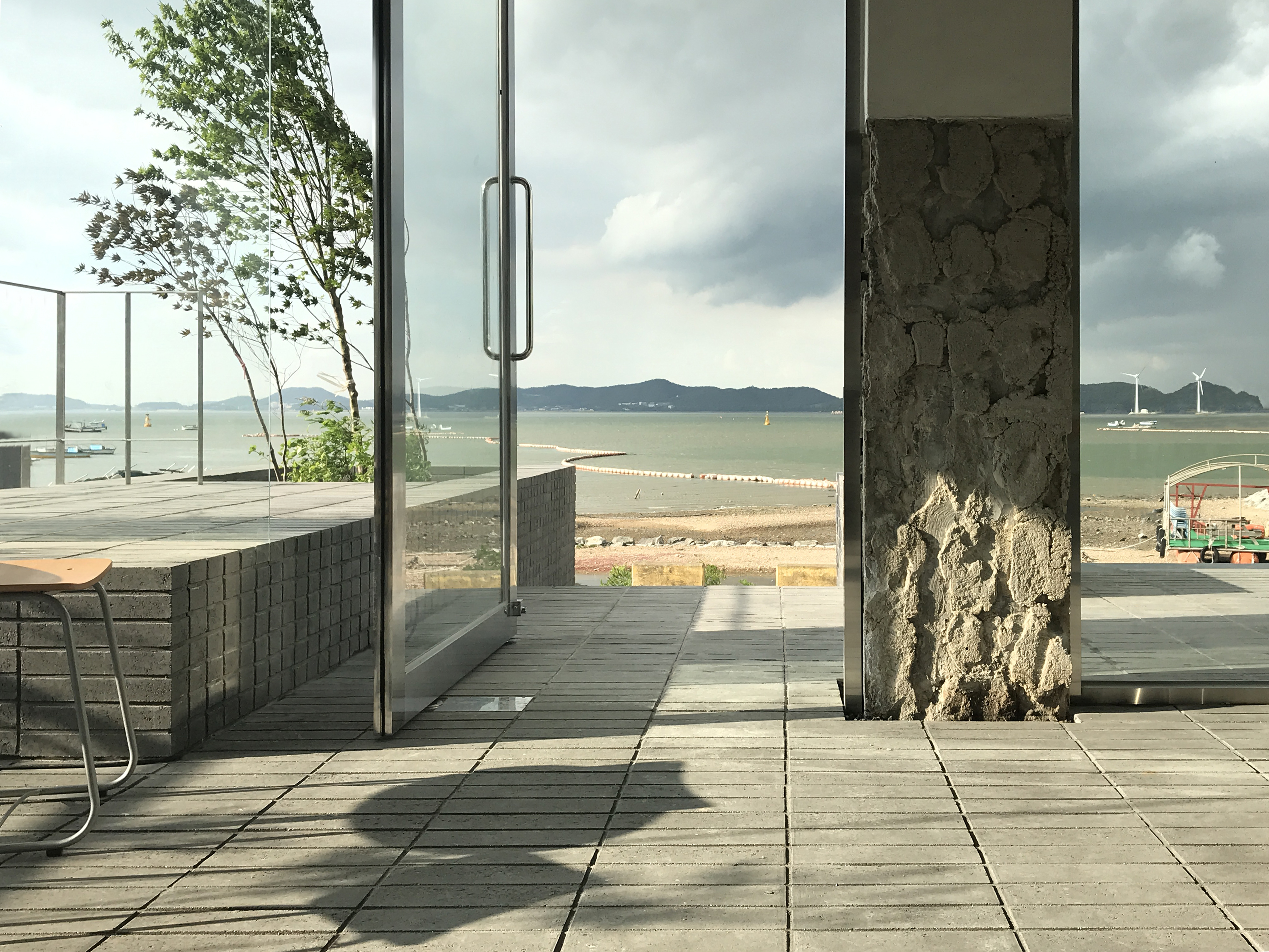 기단의 갈라진 틈새에 이곳저곳 자라난듯 보이는 나무와 화초들로 주변 자연환경과 어울리는 모습이 되도록 하였고 바람과 염분에 강한 수종을 선별하여 식재하였다. 마감재로 사용된 시멘트 벽돌은 부위별 기능에 맞춰 별도의 면처리 가공을 하였다.