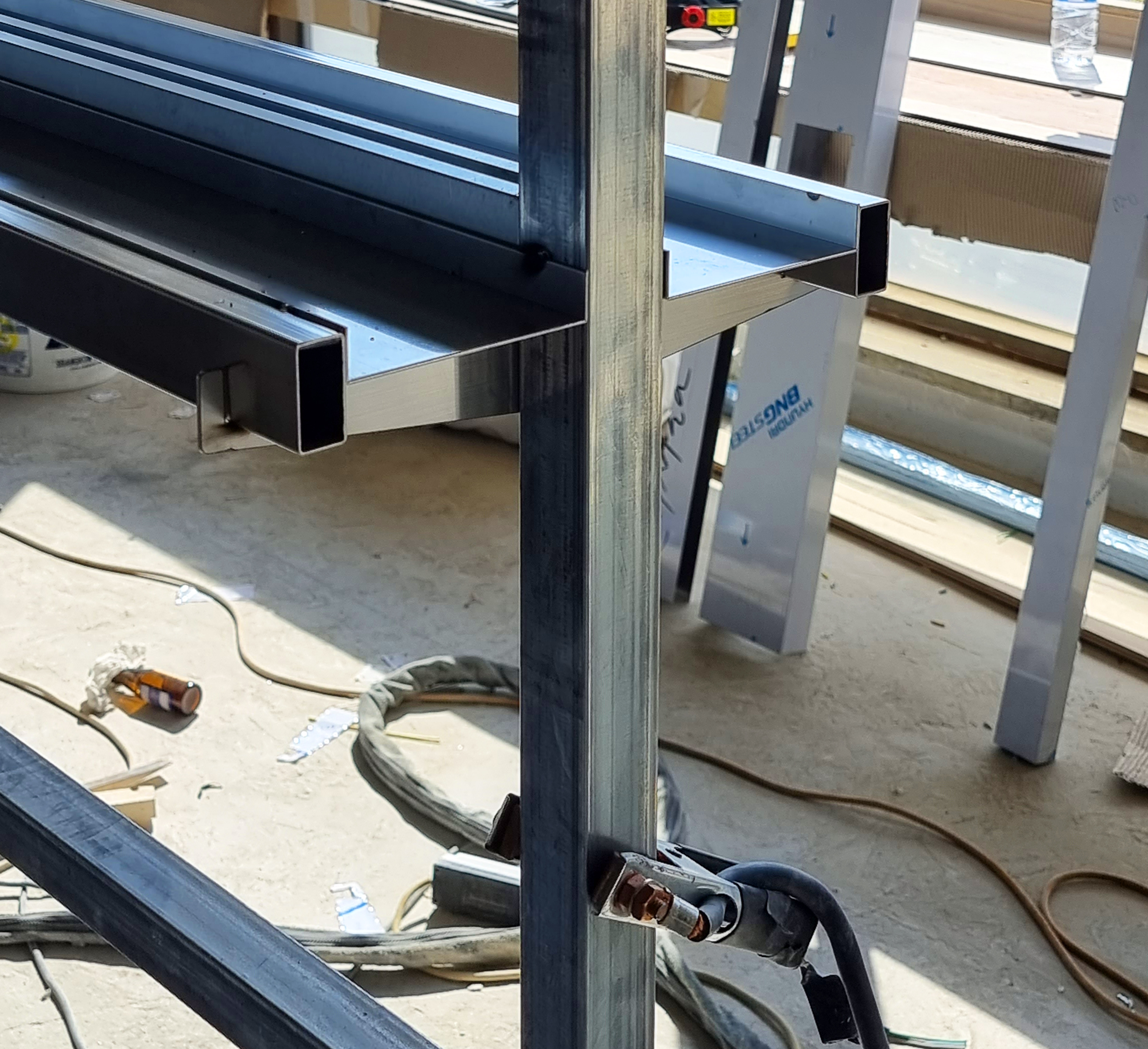 분명한 것은 밖에 보이는 풍경과 내부의 콘크리트의 대비가 잘 어울렸다는 것입니다. 때문에 이 현장이 막 신축한 철근콘크리트 건물처럼 느껴졌는지도 모릅니다. 이에 현장에 어울리는 텍스쳐 들은 유지시켜 풍경과 함께 공간의 배경이 되게 하고 카페에 필요한 기능을 하는 구조와 재료는 여기에 새롭게 덧붙이는 방식이 적절하게 느껴졌습니다. 이것은 소위 비계라는 가설구조물의 특징과 유사합니다. 건물 내부의 어느 곳에 또는 바깥의 외벽을 따라 구조물을 세우고 여기에 덧붙여 타공판을 올려 발판으로 쓰고 망을 걸어 추락을 막기도 합니다.